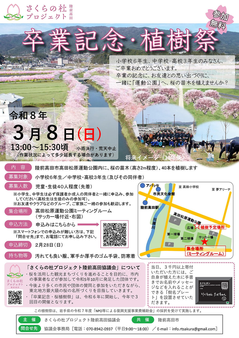 今年で3回目。さくらの杜恒例の「卒業記念・植樹祭」を、高田松原運動公園で開催します。